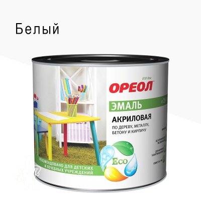 1275,00 ₽Купить Эмаль универсальная акриловая Ореол глянцевая белая 1,9кг.