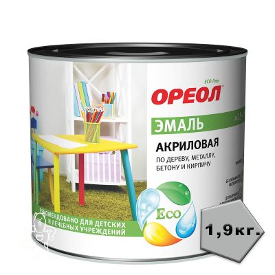 1275,00 ₽Купить Эмаль универсальная акриловая Ореол глянцевая серая 1,9кг.