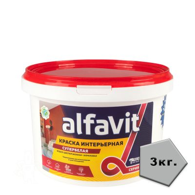 КРАСКА В/Д ИНТЕРЬЕРНАЯ СУПЕРБЕЛАЯ «ALFAVIT» 3КГ АЛЬФА