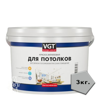 435,00 ₽Купить КРАСКА ВД-АК-2180 ДЛЯ ПОТОЛКОВ БЕЛОСНЕЖНАЯ 3 КГ ВГТ