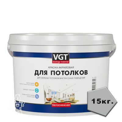 1570,00 ₽Купить КРАСКА ВД-АК-2180 ДЛЯ ПОТОЛКОВ БЕЛОСНЕЖНАЯ 15 КГ ВГТ