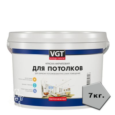 1095,00 ₽Купить КРАСКА ВД-АК-2180 ДЛЯ ПОТОЛКОВ СУПЕРБЕЛАЯ 7 КГ ВГТ
