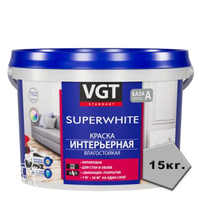 КРАСКА ВД-АК-2180 ИНТЕРЬЕРНАЯ БЕЛОСНЕЖНАЯ 15 КГ ВГТ