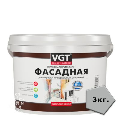 КРАСКА ВД-АК-1180 ФАСАДНАЯ БЕЛОСНЕЖНАЯ 3 КГ ВГТ