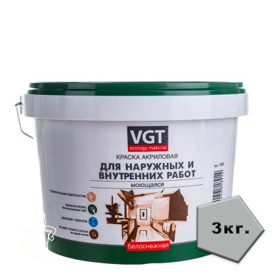 КРАСКА ВД-АК-1180 ДЛЯ НАР/ВН РАБ МОЮЩАЯСЯ БЕЛОСНЕЖНАЯ 3 КГ ВГТ