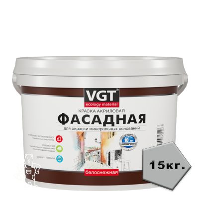 КРАСКА ВД-АК-1180 ФАСАДНАЯ БЕЛОСНЕЖНАЯ 15 КГ ВГТ