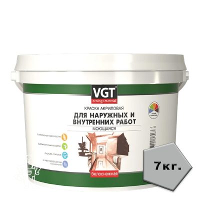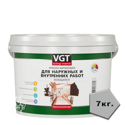 КРАСКА ВД-АК-1180 ДЛЯ НАР/ВН РАБ МОЮЩАЯСЯ БЕЛОСНЕЖНАЯ 7 КГ ВГТ