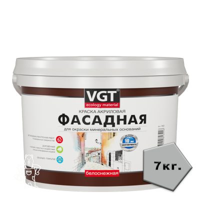 КРАСКА ВД-АК-1180 ФАСАДНАЯ БЕЛОСНЕЖНАЯ 7 КГ ВГТ