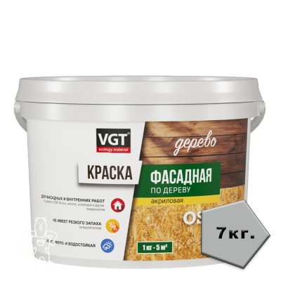 1995,00 ₽Купить КРАСКА ВД-АК-1180 ФАСАДНАЯ ПО ДЕРЕВУ БЕЛАЯ 7 КГ ВГТ