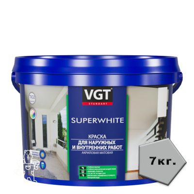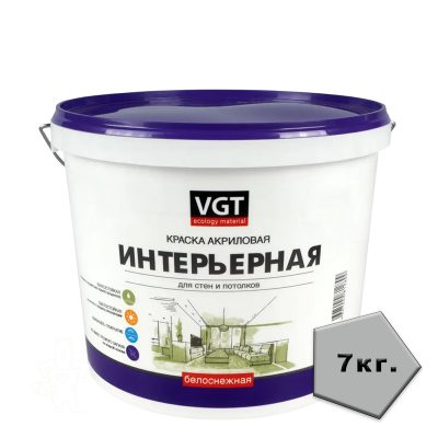 Краска ВД ВГТ интерьерная белоснежная влагостойкая 7,0кг.