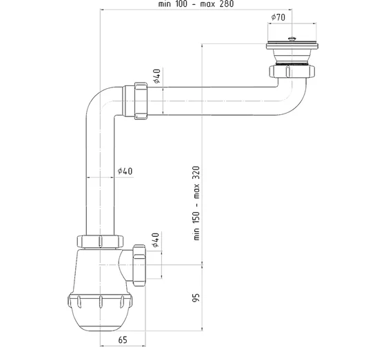 • Тип сифона: бутылочный