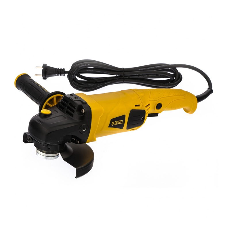 Угловая шлифовальная машина Denzel AG150-1500 26910 мощностью 1500 Вт совместима с насадками максимальным диаметром 150 мм, поддерживает частоту вращения шпинделя 8500 об/мин, благодаря чему эффективно справляется с обработкой и зачисткой поверхностей, а также резкой, шлифовкой металла толщиной до 50 мм и камня. Пригодится дома, в гараже и на даче.