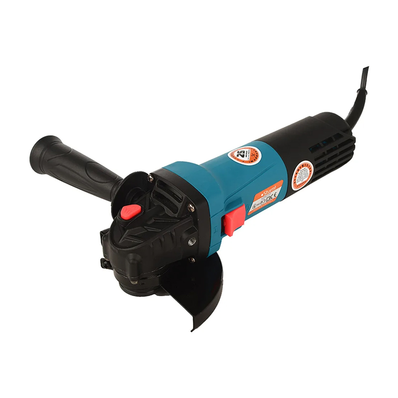 Sturm AG90121P – мощная универсальная болгарка (УШМ) профессиональной серии инструмента Sturm под рабочий диаметр диска 125 мм. Модель обладает оптимальными массово-габаритными показателями и выверенными пропорциями: малый диаметр корпуса обеспечивает максимальное удобство хвата, нейтральный центр тяжести позволяет уверенно контролировать инструмент в процессе работы даже одной рукой, низкопрофильный корпус редуктора клиновидной формы облегчает работу в местах с трудным доступом. Инструмент оснащен мощным 1200 ваттным электромотором, рассчитанным на длительную непрерывную работу и имеет дополнительную защиту от пыли и абразивных частиц (двухстороннее бронирование ротора армирующей нитью, залитые компаундом обмотки статора), что дает возможность уверенно использовать инструмент не только при операциях с металлом, но и при работах с камнем или керамической плиткой. Надежность также гарантируют усиленный редуктор с закаленными шестернями и применение японских шарикоподшипников NSK. Корпус болгарки изготовлен с использованием нейлона, что способствует его долговечности. Для удобства пользователя модель снабжена быстросъемным защитным кожухом, который надежно фиксируется при помощи специального зажимного рычага – при необходимости можно быстро менять положение кожуха, не прибегая к помощи вспомогательного инструмента, а также удобной патентованной рукоятью со специальным твердосплавным карандашом для нанесения разметки на поверхности любой сложности, включая ржавые, влажные и маслянистые. Сетевой кабель имеет резиновую изоляцию, что позволяет сохранить его гибкость и эластичность в условиях низких температур, а четырехметровая длина кабеля обеспечивает рабочую зону площадью до 50 квадратных метров, исключая необходимость задействовать дополнительный сетевой удлинитель.