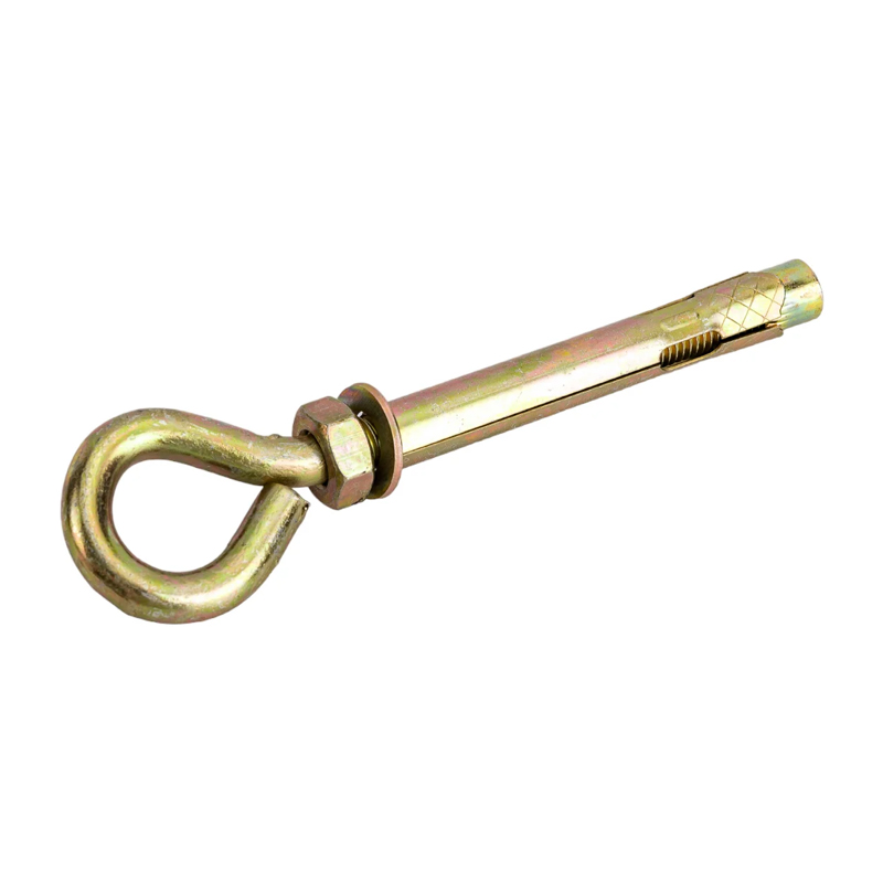 Анкерный болт с кольцом МЕТАЛЛСЕРВИС М12×100 1 шт. 1229390 предназначен для крепления материалов и конструкций к потолку, стенам, наклонным поверхностям. Он может быть использован как на производстве, так и в строительстве и быту. Стальной болт снабжен конусообразной гайкой, которая при завинчивании смещается по резьбовой части и происходит распирание муфты, что приводит к дополнительной надежности соединения деталей. Анкерный болт с кольцом применяется в тяжелогрузных конструкциях с природным камнем, бетоном и кирпичом.