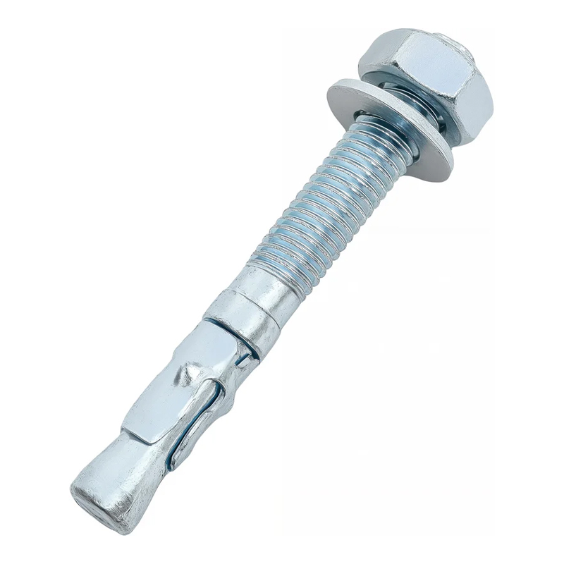 Клиновой анкер представляет собой крепежный элемент в виде шпильки с резьбой, на одном конце которой располагается шайба с гайкой, на другом — распорный узел с муфтой в форме конуса.