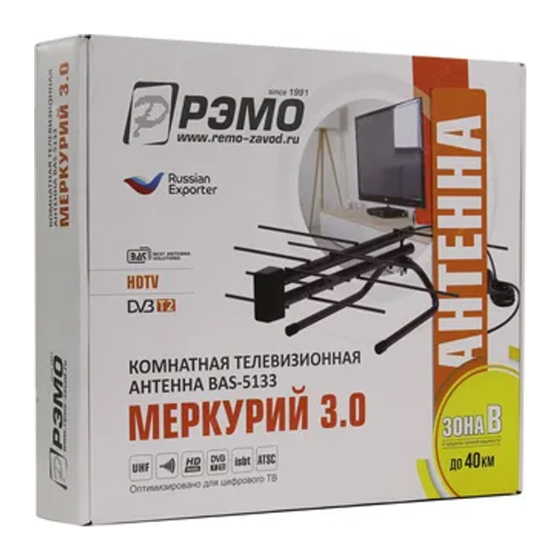 Купить Антенна комнатная BAS-5133-5V Меркурий 3.0 активная РЭМО в Ликино-Дулево с доставкой по городу и в другие города.