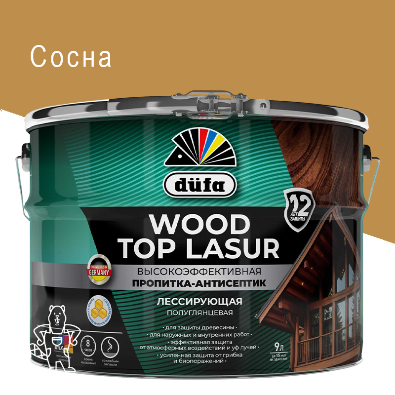 Антисептик лессир. DUFA WOOD TOP LASUR 13 алкид. Сосна 9л