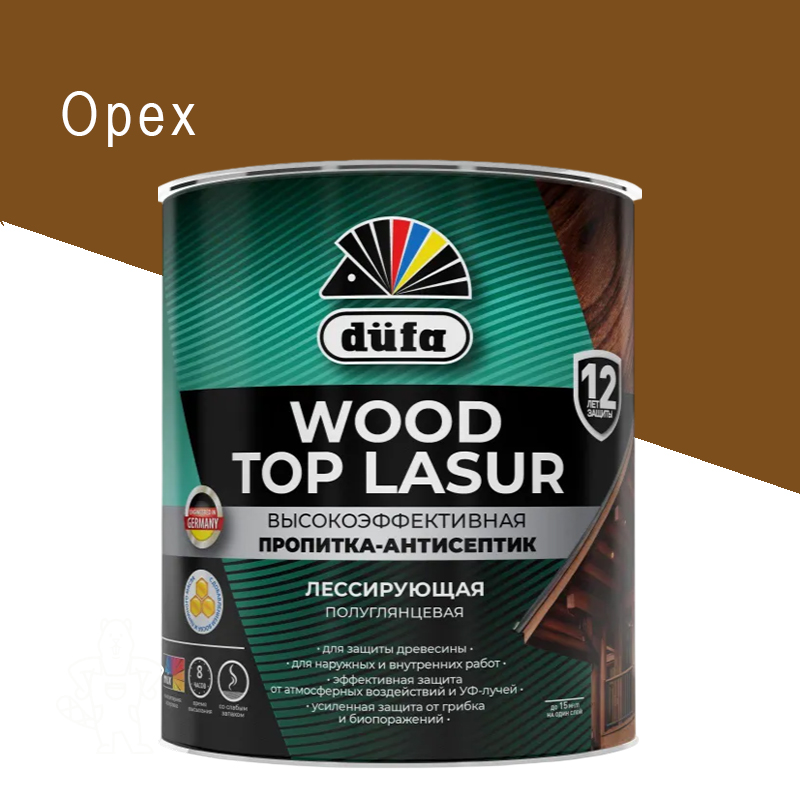 Антисептик лессир. DUFA WOOD TOP LASUR 16 алкид. Орех 0,9л