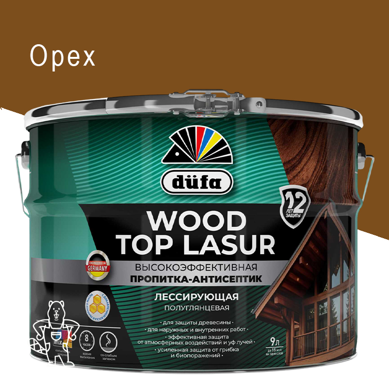Антисептик лессир. DUFA WOOD TOP LASUR 16 алкид. Орех 9л