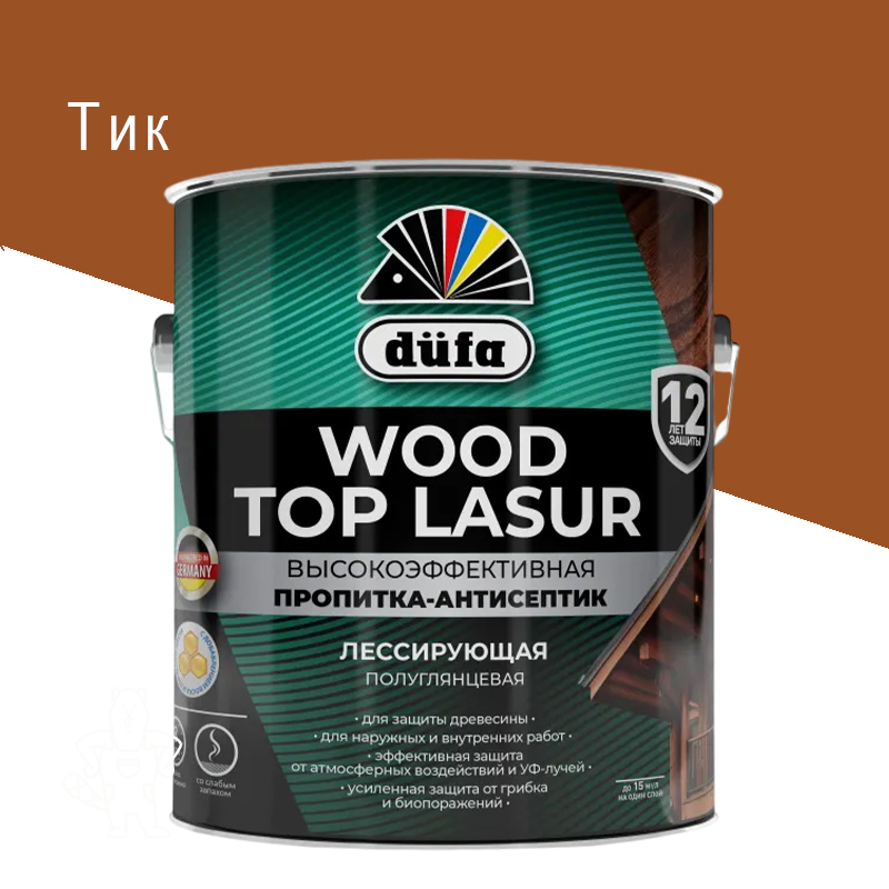 Антисептик лессир. DUFA WOOD TOP LASUR 17 алкид. Тик 2,5л