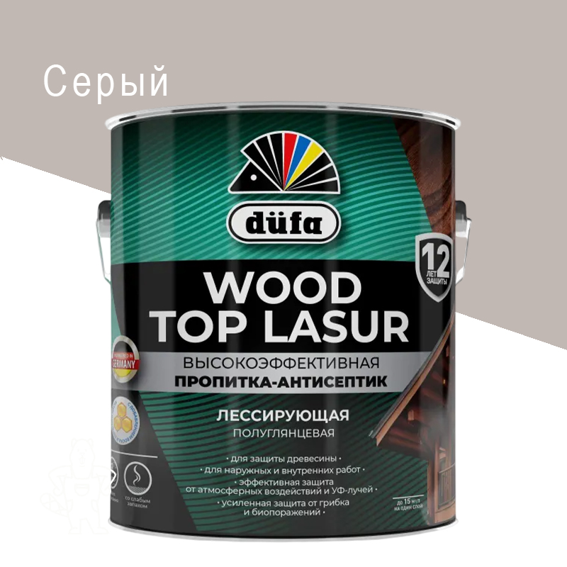 Антисептик лессир. DUFA WOOD TOP LASUR 50 алкид. Серый 2,5л