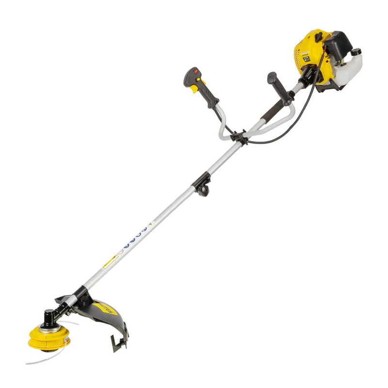 Легкий ручной запуск позволяет не испытывать проблемы даже новичкам. Элементы управления размещены прямо на рукоятке. Имеется блокиратор курка газа, позволяющий исключить случайное нажатие. Защитный кожух и очки обезопасят от отскока камней и срезанной травы. Удобный ранцевый ремень равномерно распределит нагрузку от веса бензотриммера на оба плеча. Стандартная антивибрационная система погасит часть вибрации двигателя.