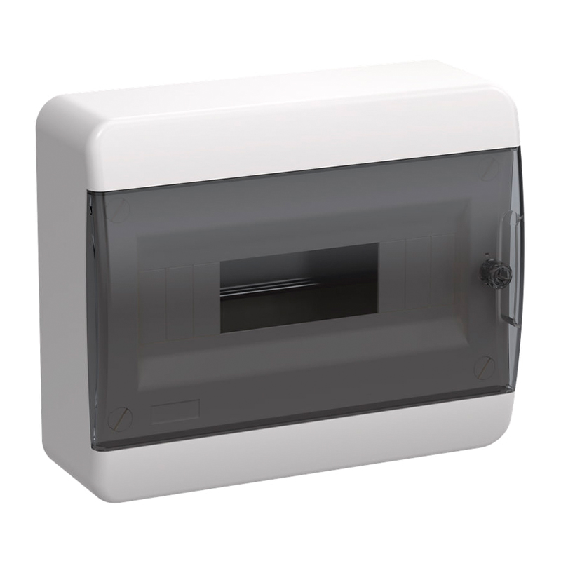 Главная МАГАЗИН ЭЛЕКТРИКА Щиты, боксы Бокс с/у белый 12 мод. прозр.черная дверца IP41 Tekfor