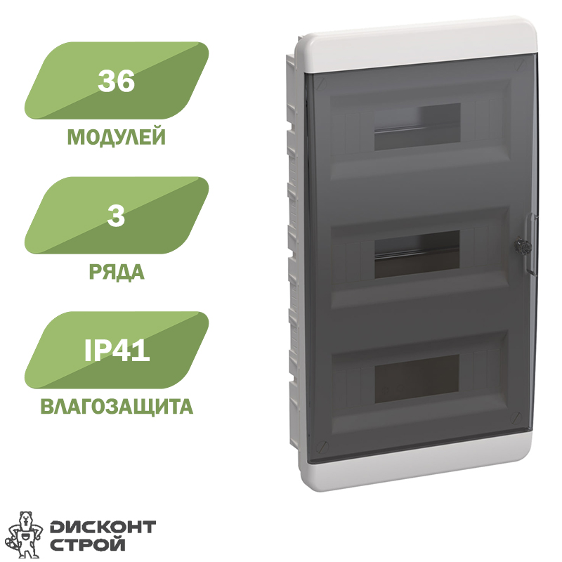 Купить Бокс с/у белый 36 мод. прозр.черная дверца IP41 Tekfor