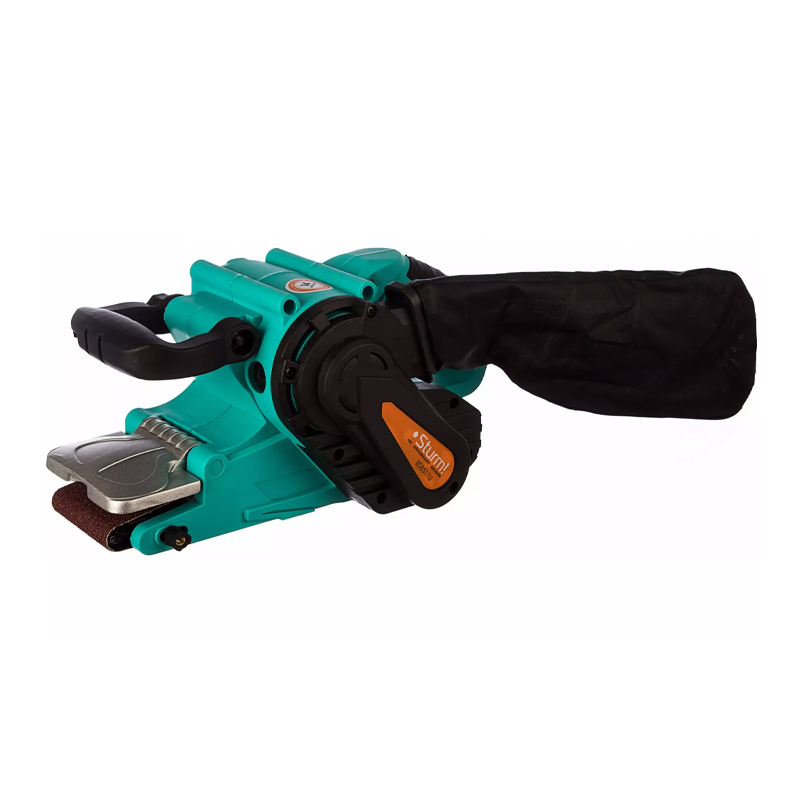 Sturm BS8511U –универсальная и производительная ленточная шлифовальная машина, рассчитанная под использование шлифовальной ленты размерностью 76х533 мм – предназначена для грубого и чистового шлифования плоских и выпуклых поверхностей, в том числе значительных по площади. Важная конструктивная отличительная особенность Sturm BS8511U от аналогов – разный размер опорных роликов: диаметр переднего ролика значительно меньше диаметра заднего – цель данного решения – сокращение до минимума мертвой зоны при обработке вплотную к препятствиям. Передняя крышка корпуса выполнена откидной, что способствует лучшему доступу в узких местах. Шлифмашина оснащена мощным 1100 Вт электромотором, позволяющим развивать значительную скорость вращения ленты, тем самым обеспечивая высокую производительность, а также качество работы: заложенный запас мощности способствует ровному поступательному ведению инструмента и эффективной обработке материалов с повышенными требованиями по качеству.