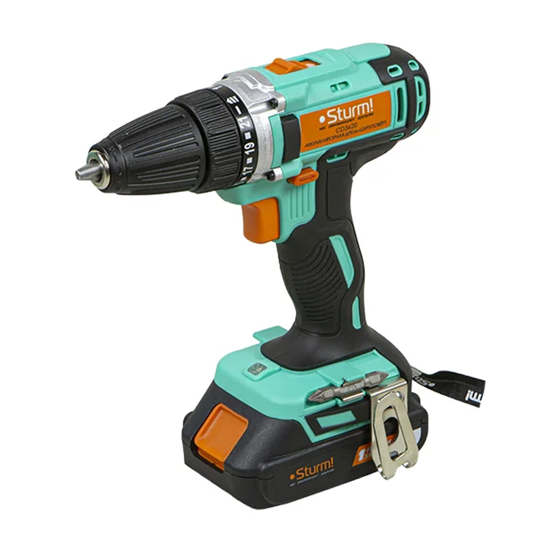 Широкий функционал Sturm CD3620 включает функцию блокировки вала шпинделя, благодаря которой оснастку можно заменять даже одной рукой, а также электронный тормоз выбега двигателя, обеспечивающий мгновенную остановку патрона. Для комфорта пользователя при работе в условиях недостаточной освещенности инструмент оснащен LED-подсветкой рабочей зоны. Шуруповерт штатно комплектуется парой литий-ионных (Li-ion) аккумуляторов емкостью 2.0 Ач, импульсным зарядным устройством, позволяющим быструю зарядку полностью разряженного аккумулятора (50-60 мин до 100%), а также пластиковым кейсом для удобства хранения и транспортировки.