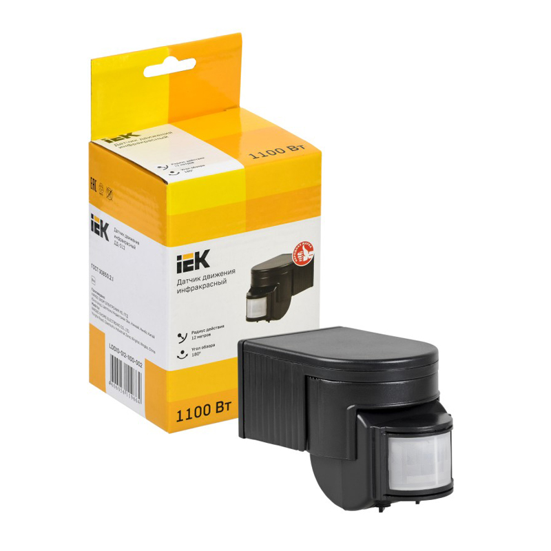 ДД012 Датчик движения ИК настенный 1100w 180гр. 12м IP44 черный