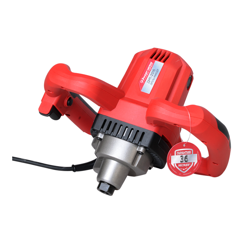 Электрический миксер Энергомаш ДМ-2016 — мощный и удобный электроинструмент для продуктивного перемешивания растворов и смесей любого типа: краски, грунтовки, сухой стяжки и цементные растворы с добавлением каменной крошки.