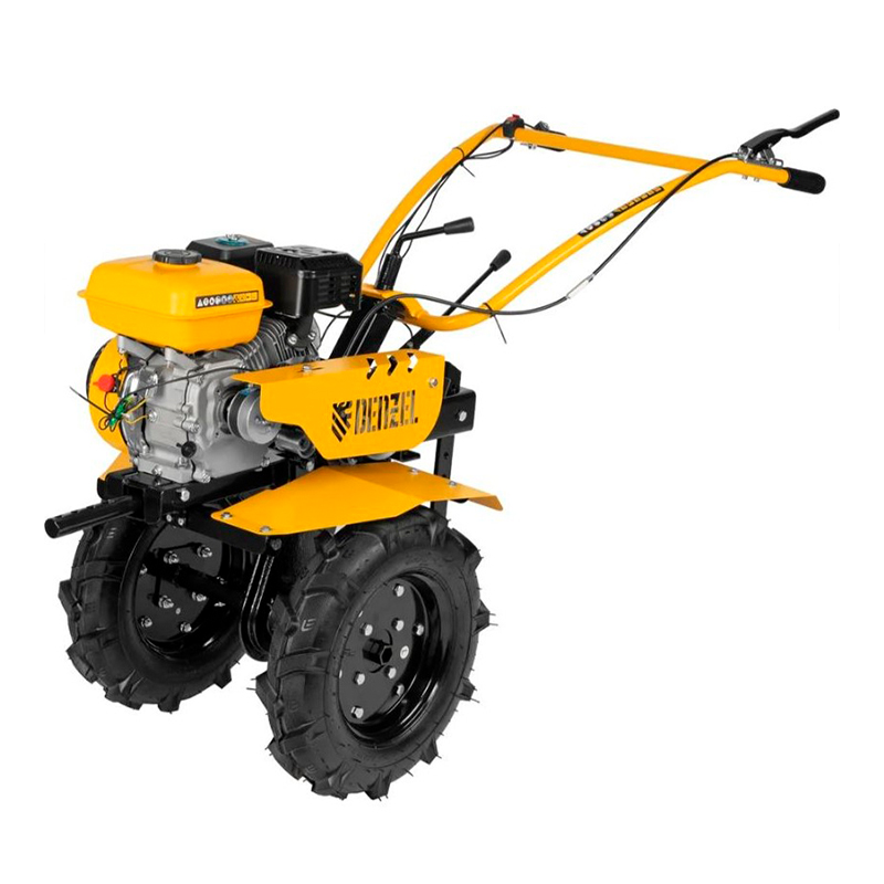 Мотоблок Denzel DPT-270S 56442 с двигателем объемом 212 см3 и мощностью 7 л. с, ременным механизмом сцепления, фрезами 3 х 4, шкивом отбора мощности (ШОМ) и коробкой передач 2В/1Н предназначен для проведения сельскохозяйственных работ. Максимальная ширина обработки составляет 1000 мм. Фрезы собираются из двух двойных и двух одинарных секций, что позволяет регулировать ширину вспашки. Шкив отбора мощности и универсальный кронштейн диаметром 30 мм позволяют установить различное навесное оборудование: плуг, окучник, картофелевыкапыватель, а также грунтозацепы и удлинители осей. Совместимые артикулы: Denzel 59901, 59902, 59903, 59904, 59905, 59906, 59907, 59908. Такое решение значительно расширяет возможности мотоблока и позволяет минимизировать расходы на закупку сельскохозяйственной техники.