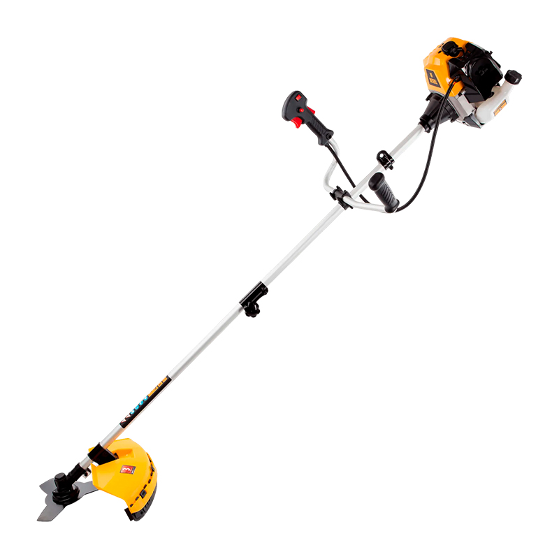 Бензиновый триммер Denzel DR-33S 96272 с двигателем объемом 33 см3 и разъемной штангой, состоит из 2 частей. Используется для ухода за газоном, скашивания травы различных типов, в том числе с жесткими стеблями (полынь, крапива, лебеда). Триммер эффективен на сложных участках: вдоль стен, в ямках и на возвышенностях, вокруг деревьев. Две режущие насадки — трехлопастный нож и катушка с леской — вращаются со скоростью 9500 об/мин, обеспечивая ширину скашивания 25,5 и 42 см. ;Эффективную работу инструмента обеспечивает двухтактный двигатель мощностью 1,8 л.с. При этом триммер экономично расходует топливо, поэтому часто заправлять его не придется.