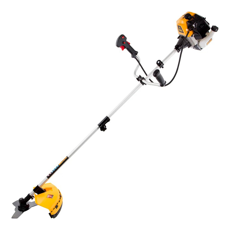 Бензиновый триммер Denzel DR-43S 96274 с двигателем объемом 43 см3 и разъемной штангой, состоит из 2 частей. Используется для ухода за газоном, скашивания травы различных типов, в том числе с жесткими стеблями (полынь, крапива, лебеда). Триммер эффективен на сложных участках: вдоль стен, в ямках и на возвышенностях, вокруг деревьев. Две режущие насадки — трехлопастный нож и катушка с леской — вращаются со скоростью 9500 об/мин, обеспечивая ширину скашивания 25,5 и 42 см. ;Эффективную работу инструмента обеспечивает двухтактный двигатель мощностью 2,5 л.с. При этом триммер экономично расходует топливо, поэтому часто заправлять его не придется.