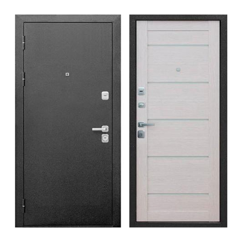 Входная металлическая дверь Гарда Муар Царга 7,5 см предназначена для квартир в многоэтажном доме. Выполнена в современном стиле. Цвет внешней стороны — «чёрный муар», внутренней — «лиственница беж». Оснащена двумя хромированными стальными ручками и обзорным глазком. Произведена в России.