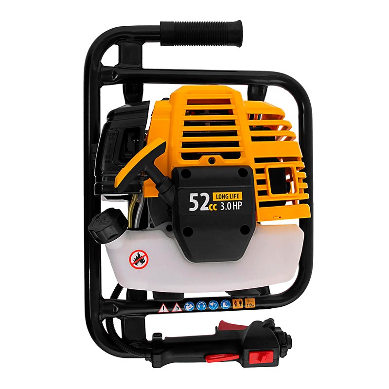 Мотобур Denzel DX-52 56001 с объемом двигателя 52 см3 и диаметром соединения 20 мм предназначен для получения отверстий и углублений во льду или в грунте максимальным диаметром 300 мм. Мощный и экономичный двигатель мощностью 3 л. с. позволяет эффективно решать поставленные задачи. Для бурения отверстий диаметром более 150 мм и глубиной более 1 м предусмотрена возможность управления мотобуром двумя пользователями. Устройство будет полезно на строительной площадке, загородном участке, пригодится также во время зимней рыбалки.