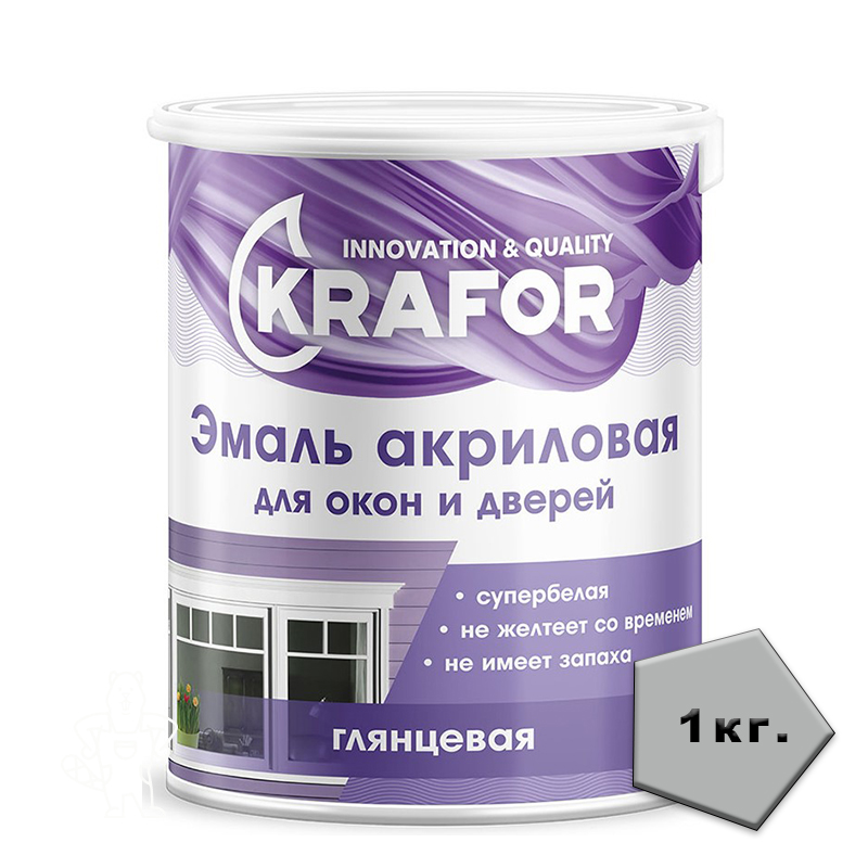 Купить ЭМАЛЬ АКРИЛОВАЯ ДЛЯ ОКОН И ДВЕРЕЙ СУПЕРБЕЛАЯ KRAFOR 1КГ в Ликино-Дулево с доставкой по городу и в другие города.
