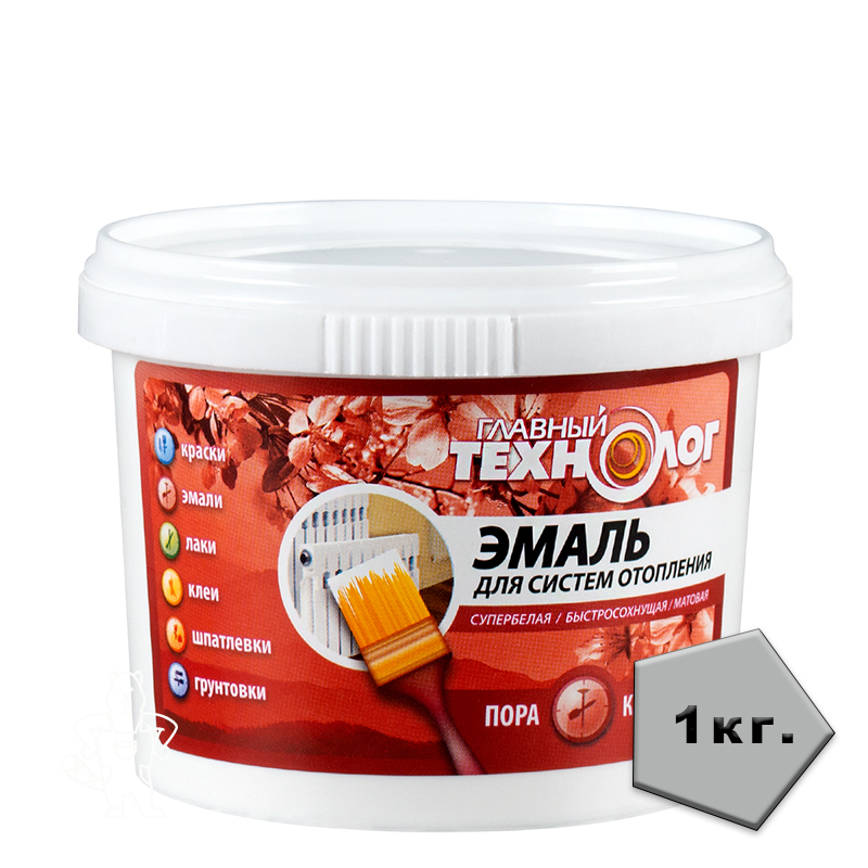 Купить Эмаль для радиаторов Главный Технолог полуматовая супербелая 1 кг в Ликино-Дулево с доставкой по городу и в другие города.