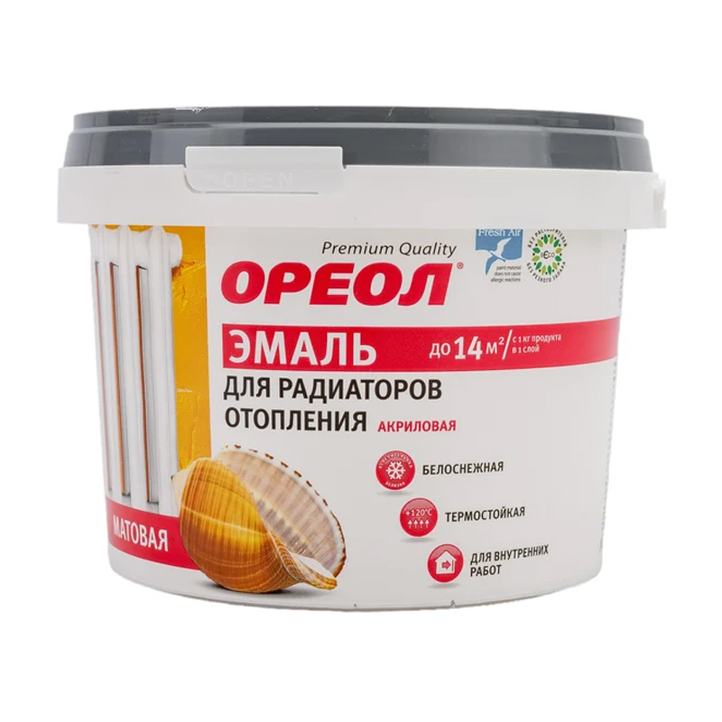 Эмаль Ореол для радиаторов акриловая глянц. белая 0,8 кг