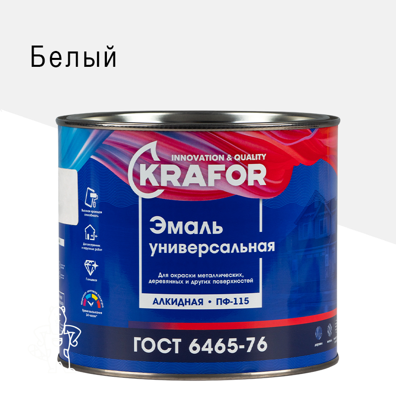 Купить Эмаль KRAFOR ПФ-115 Белая матовая 1,9 Кг в Ликино-Дулево с доставкой по городу и в другие города.