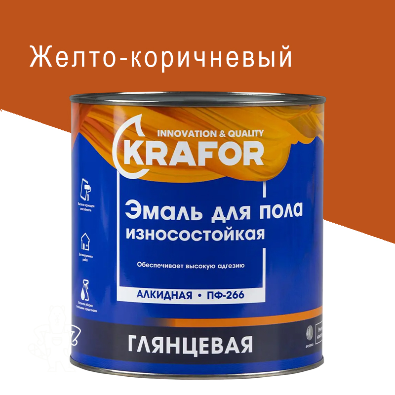 Купить Эмаль KRAFOR ПФ-266 Желто-коричневая 2,7 Кг в Ликино-Дулево с доставкой по городу и в другие города.
