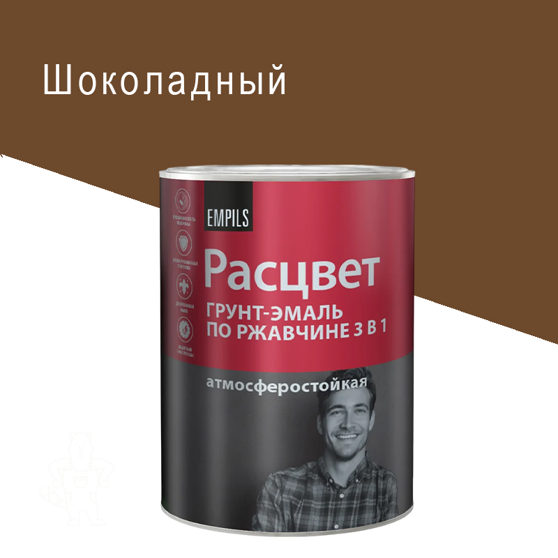 Купить Грунт-эмаль на ржавчину 3 в 1 алкидная Расцвет глянцевая шоколадная 0,9 кг в Ликино-Дулево с доставкой по городу и в другие города.