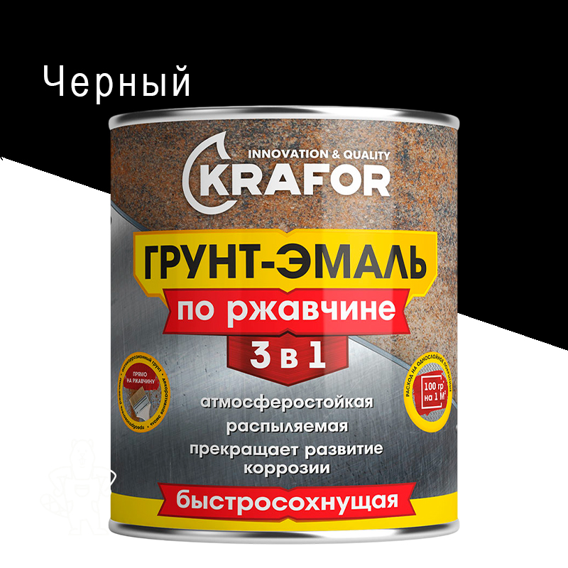 Купить Грунт-эмаль по ржавчине KRAFOR 3 в 1 быстросохнущая, черная 20 Кг в Ликино-Дулево с доставкой по городу и в другие города.