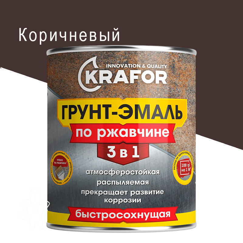 Купить Грунт-эмаль по ржавчине KRAFOR Коричневая 2,7 Кг в Ликино-Дулево с доставкой по городу и в другие города.