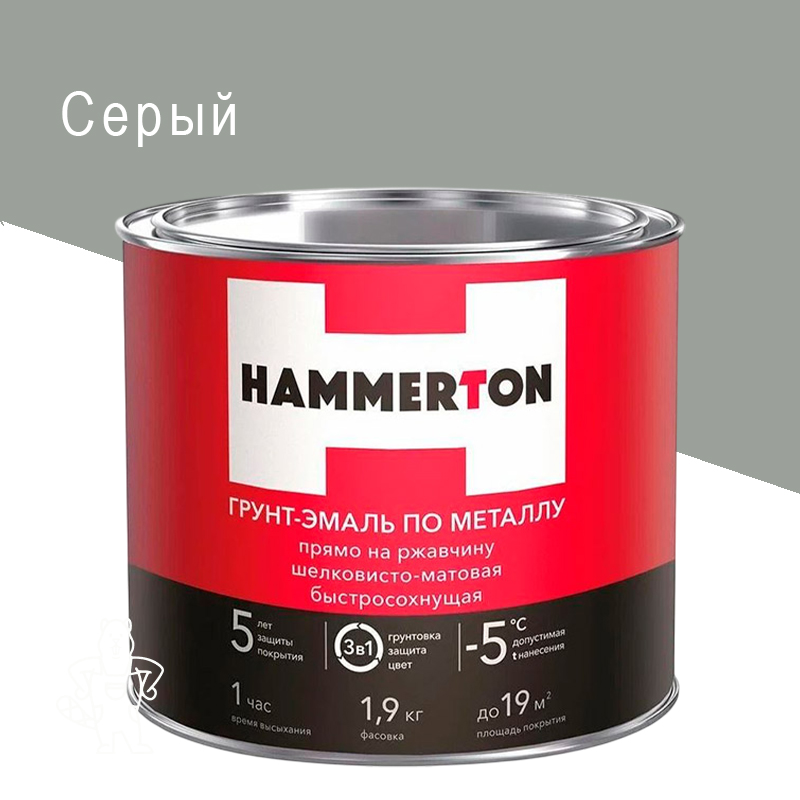 Главная МАГАЗИН ЛКМ Эмали HAMMERTON Грунт-эмаль по ржавчине 3в1 серая 1,9кг. HAMMERTON