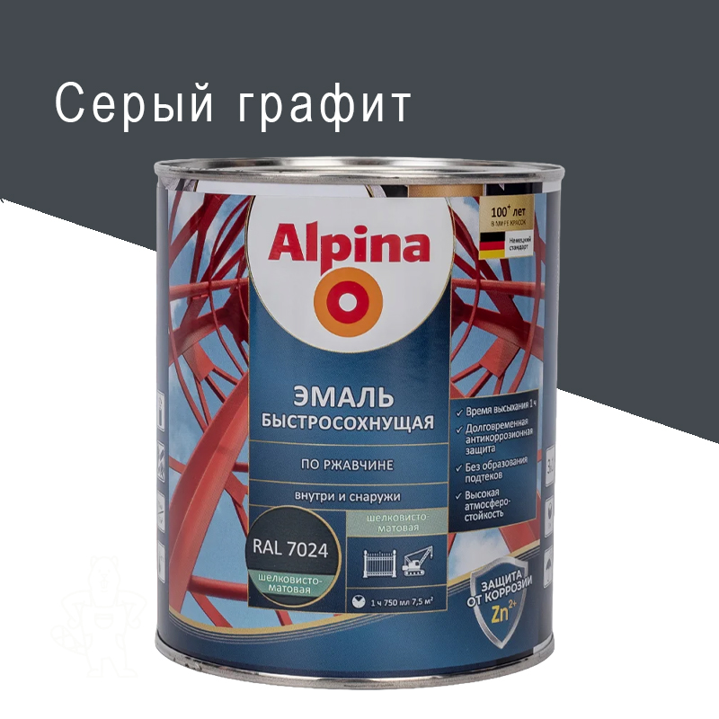 ГРУНТ-ЭМАЛЬ ПО РЖАВЧИНЕ БЫСТРОСОХН. СЕРЫЙ ГРАФИТ (RAL 7024) 0,75 Л «ALPINA»