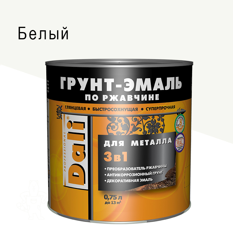 Купить Грунт-эмаль по ржавчине «DALI» 3 в 1 белая 0,75 л в Ликино-Дулево с доставкой по городу и в другие города.