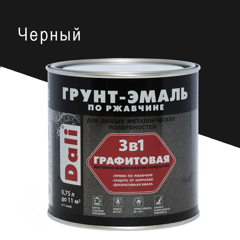 Купить Грунт-эмаль по ржавчине «DALI» 3 в 1 графитовая черная 0,75 л в Ликино-Дулево с доставкой по городу и в другие города.