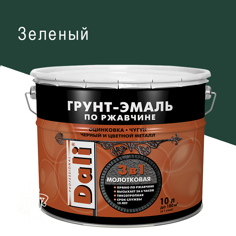 Купить Грунт-эмаль по ржавчине «DALI» 3 в 1 молотковая зеленая 10 л в Ликино-Дулево с доставкой по городу и в другие города.
